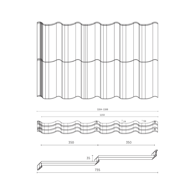 - Plattenbreite: 1184 mm