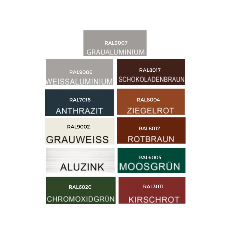 Das Blech ist in mehreren Ausfรผhrungen verfรผgbar, die Schutz vor Witterung und Korrosion bieten und die Optik verbessern.