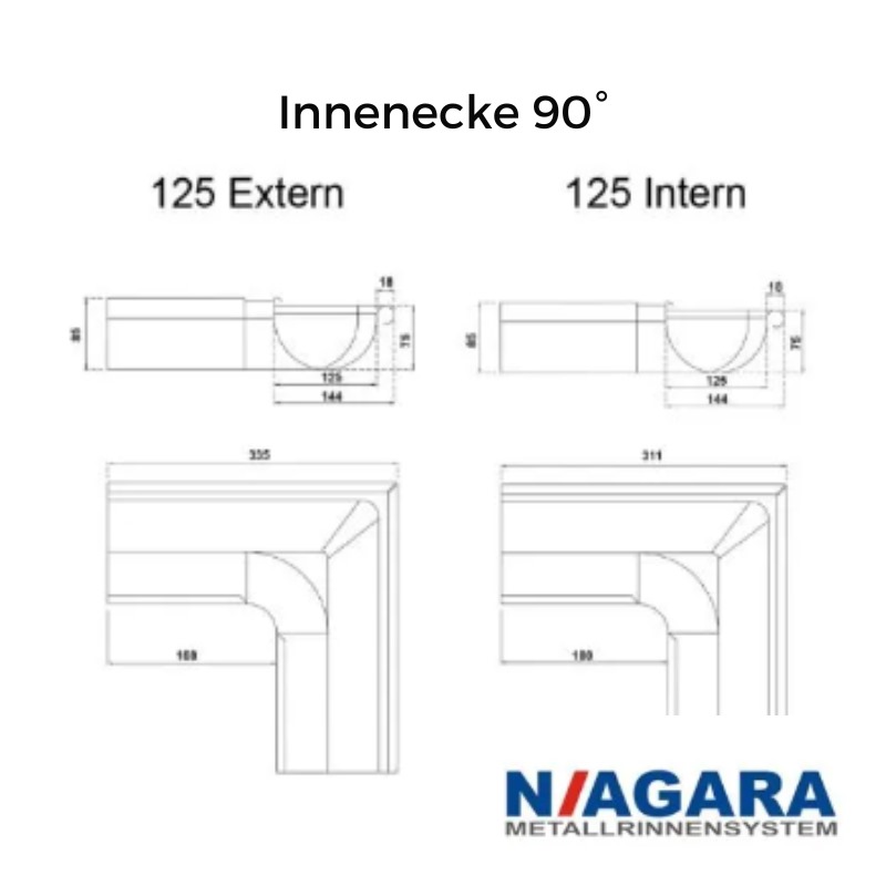 Erhältlich in den Größen 125 mm und 150 mm, lässt sich die Innenecke einfach mit den passenden Dach- und Fassadenprofilen kombinieren. Aluminium sorgt für ein leichtes, robustes Bauteil, während die Titanium-Oberfläche zusätzlichen Schutz vor Korrosion, UV-Strahlung und Witterungseinflüssen bietet.