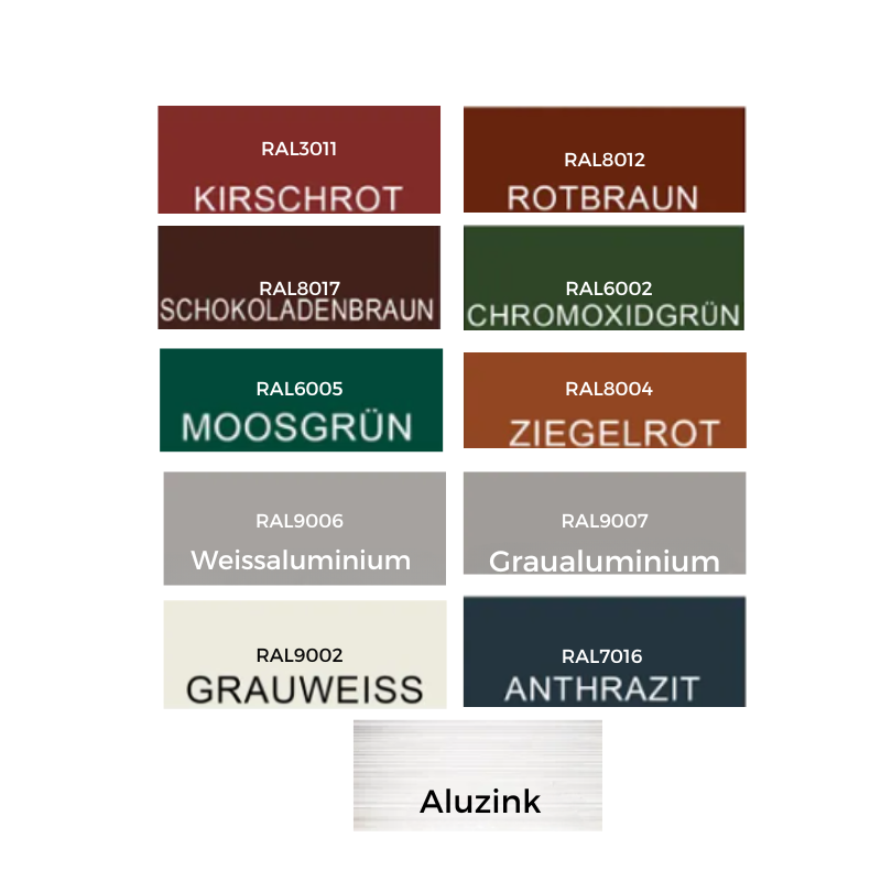 Polyester Standard 25โฏยตm: Hoch UV-bestรคndig (RUV2 nach EN 10169/2) und in vielen Farben erhรคltlich.