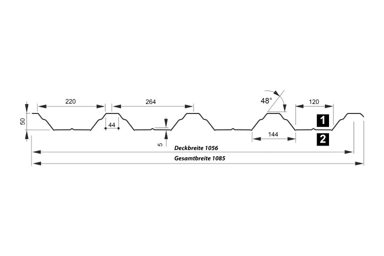 - Plattenbreite: 1085 mm (Berechnungsbreite)