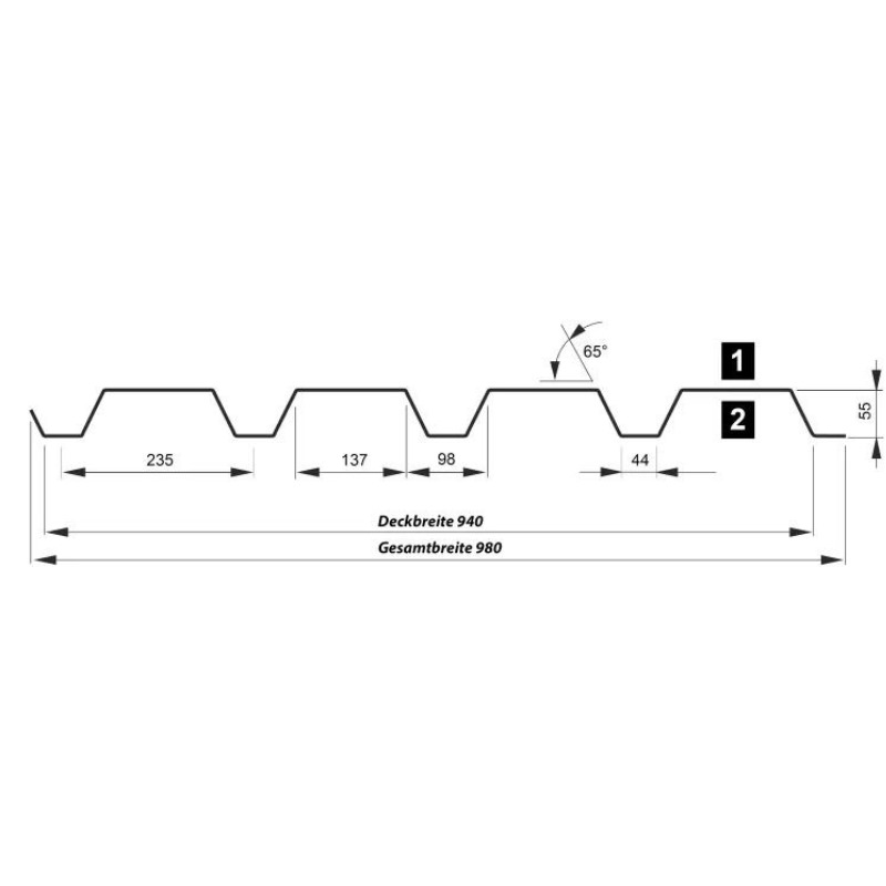 - Plattenbreite: 980 mm (Berechnungsbreite)